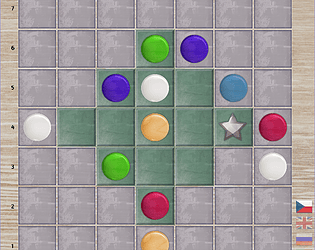 I don't think so. The rules are very simple. The stone can only be moved to the last free position in the chosen direction. Outside the marked center field, it can also be moved to the letter "L". The goal is to occupy the crown in the middle of the board.
