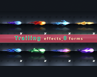 This package includes 8 video assets of projectile flight effects, ideal for spell missiles or bullets in games.