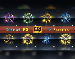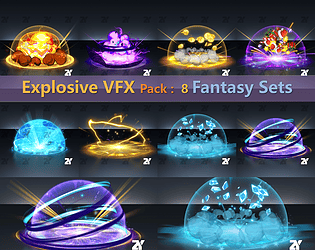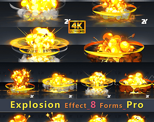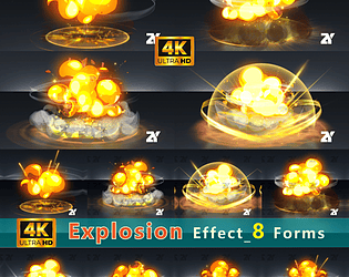 This collection includes eight sets of explosion effects with different themes