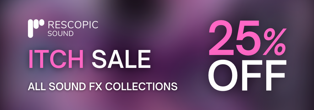 Being part of the Itch community has its perks, and this is definitely one of them! You have access to our outstanding sound fx collections with an incredible 25% discount. Imagine how much your game projects will improve with this amazing opportunity.