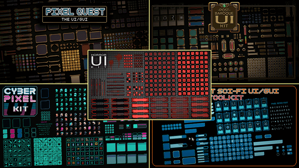 Bring your games to life with this pixel art user interface bundle, perfect for Fantasy, Steampunk, Cyberpunk, Horror, Sci-fi and Victorian projects! Each UI is designed on a 32x32 pixel grid, fully modular and cross-compatible, offering endless customization possibilities.