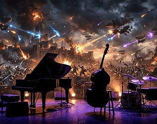 12 jazz-rock battle BGM tracks — melee, magic, army & airship scenes. WAV files, 5 min+, seamless loop.