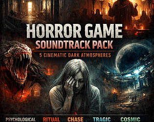 Five cinematic horror soundtracks with distinct atmospheres for immersive game experiences.