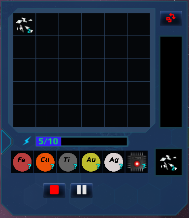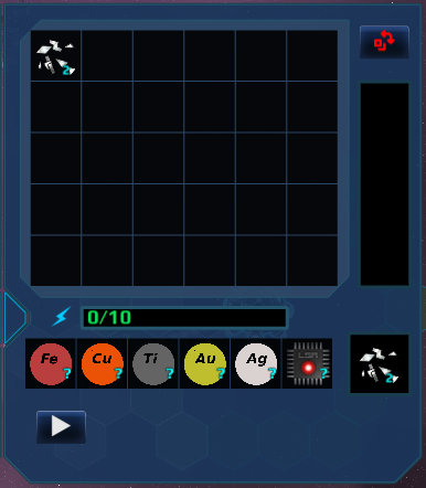 Станция имеет свой склад. Сырье (обломки) необходимо загрузить в слот производства..