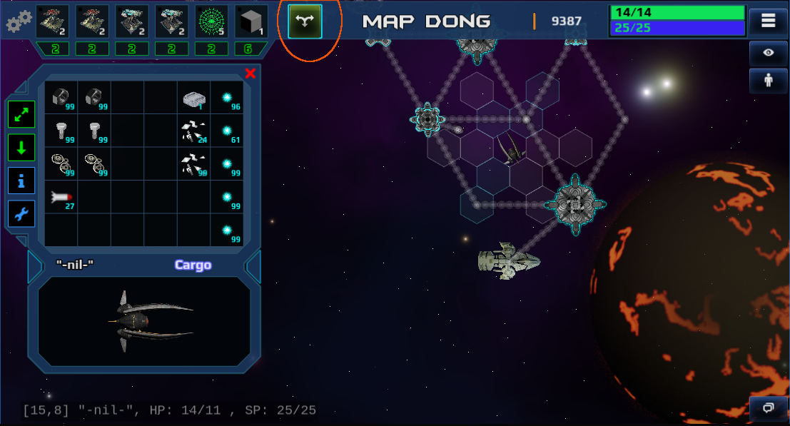 Взаимодействие осуществляется нахождением корабля в выделенной клетке и кликом или нажатием на станцию , при этом должен быть активен слот движения-