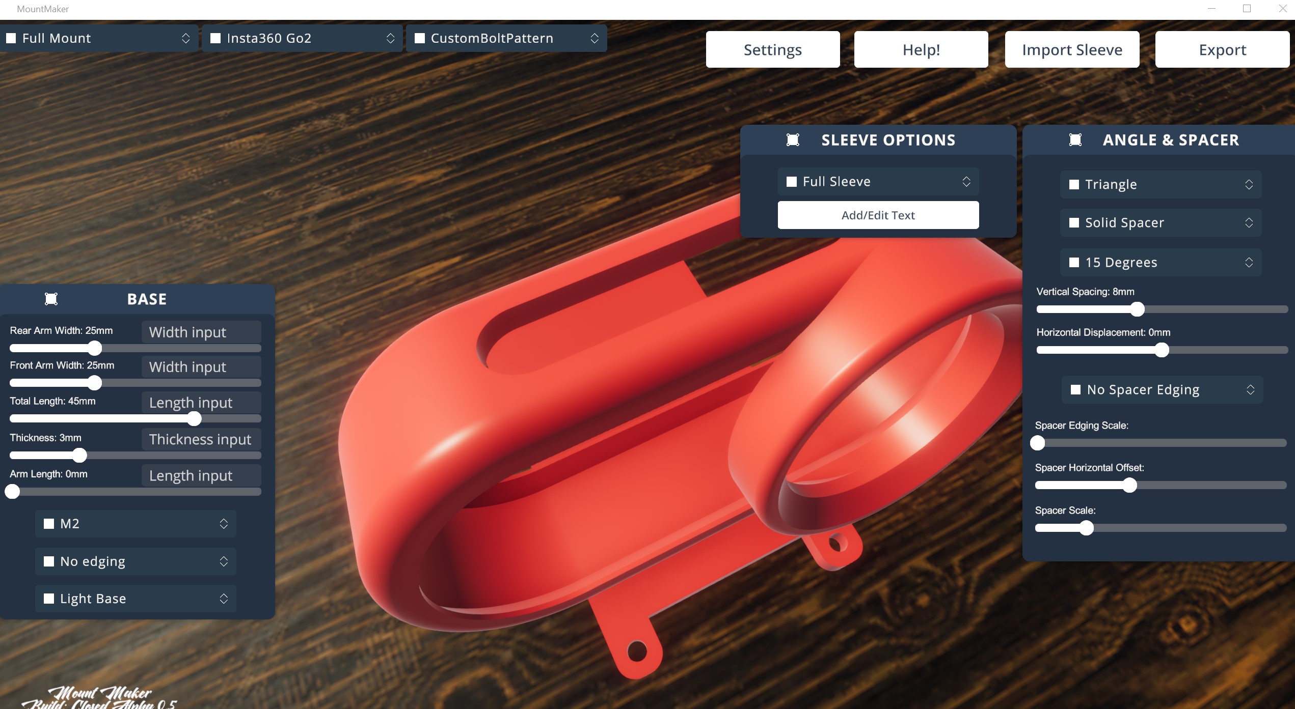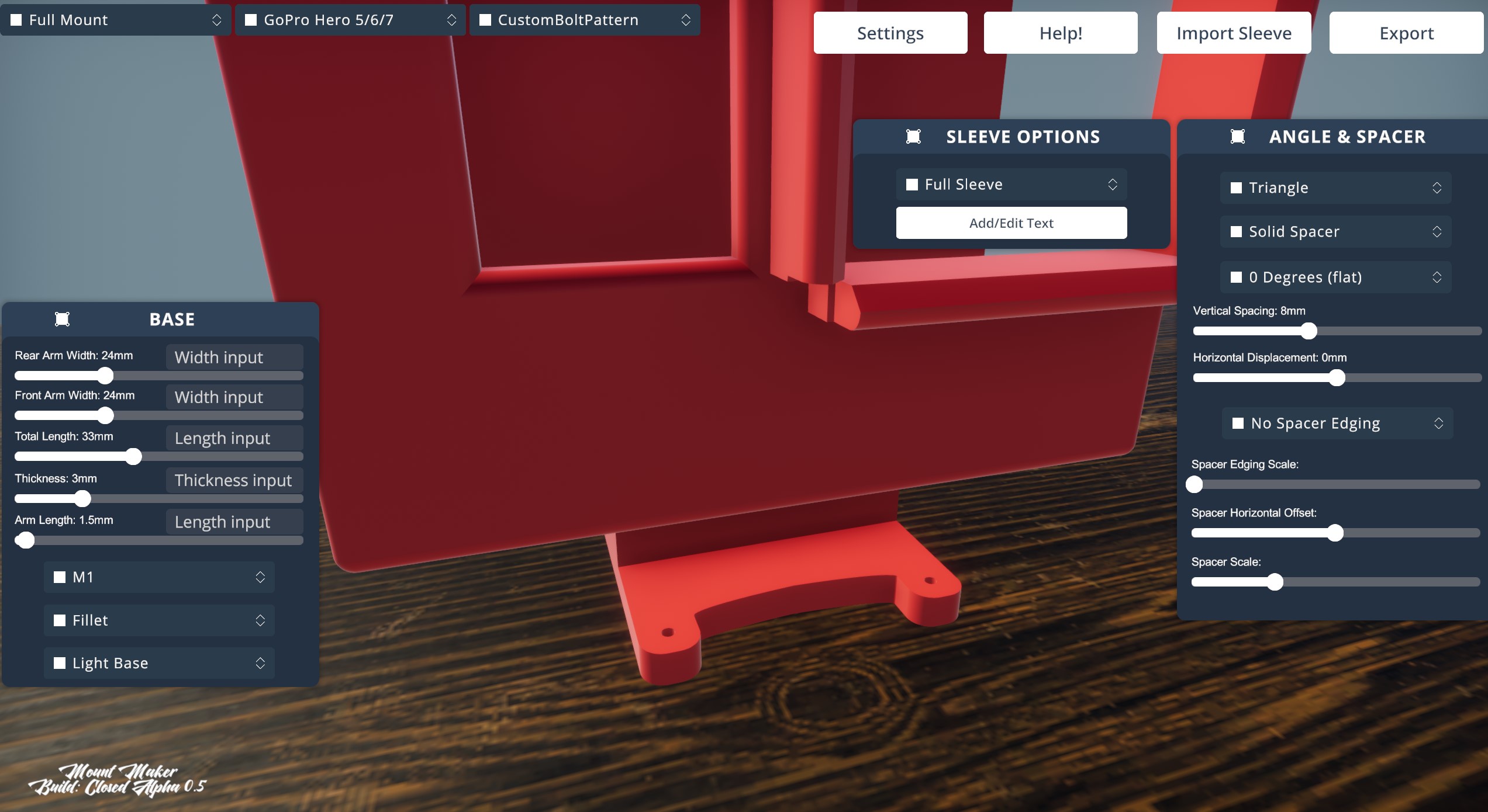 Hey Nate. I didn't have the settings of that written down (which brings the idea... can an option for saved favorite settings be added? That way you can quickly go back and generate .stl's if you lost previous files maybe?) so I went about creating something close. That image was my second mount. The first was even worse. I think I had used a fillet on the base. Sorry I didn't save a pic of that one.