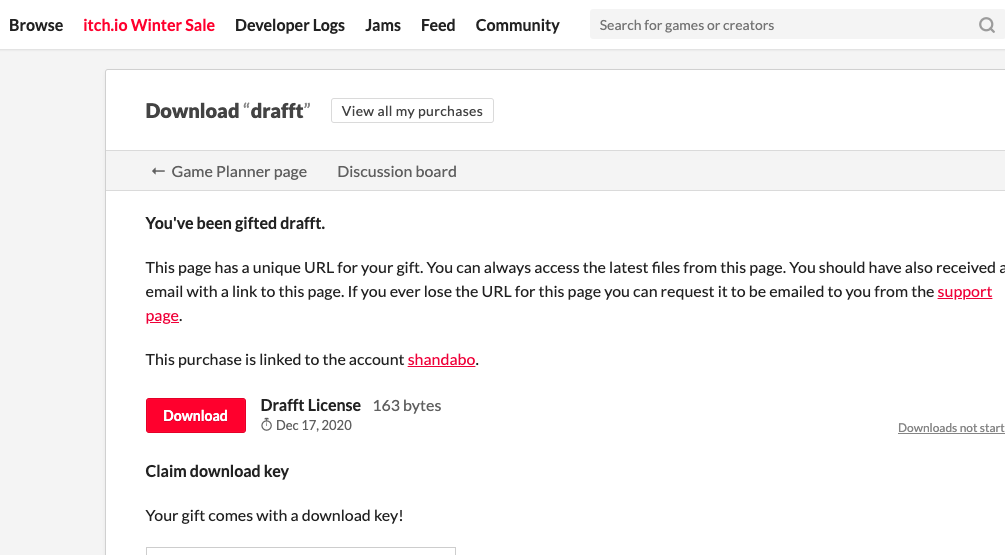 I received this purchase as a gift. All I see is a button to download "drafft license" which gives me a license.txt. Where is the download link for the software?