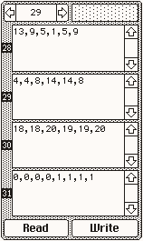 %%WGT0{"w":[{"name":"patternPicker1","type":"contraption","size":[100,100],"pos":[48,107],"def":"patternPicker","widgets":{"c":{},"v":{},"cc":{}}}],"d":{"patternPicker":{"name":"patternPicker","size":[100,100],"resizable":1,"margin":[10,10,10,10],"description":"a palette of patterns and (optionally) colors.","script":"on get_value do v.value end\non set_value x do v.value:x view[] end\non get_color do cc.value end\non set_color x do cc.value:x view[] end\n\nb:5\nr:4+2*cc.value\ns:floor(c.size-2*b)/8,r\n\non boxes do\n flip b+s*flip 8 cross r\nend\n\non view do\n o:-50\n c.clear[]\n each p i in boxes[]\n c.pattern:i\n c.rect[p s]\n c.pattern:1\n c.box[p s+1]\n if i=v.value o:p end\n end\n c.pattern:0\n c.box[o-1 s+3]\n c.pattern:1\n c.box[o-2 s+5]\nend\n\non inside p r do\n min(p>r)&(r+s>p)\nend\non click pos do\n each p i in boxes[]\n if inside[pos p]\n set_value[i]\n card.event[\"change\" i]\n end\n end\nend\n","template":"on change val do\n \nend","attributes":{"name":["value","color"],"label":["Value","Color"],"type":["number","bool"]},"widgets":{"c":{"type":"canvas","size":[100,100],"pos":[0,0],"locked":1,"border":0,"scale":1},"v":{"type":"slider","size":[60,25],"pos":[2,-41],"locked":1,"show":"none","interval":[0,47]},"cc":{"type":"button","size":[14,20],"pos":[73,-40],"locked":1,"show":"none","style":"check","value":1}}}}}