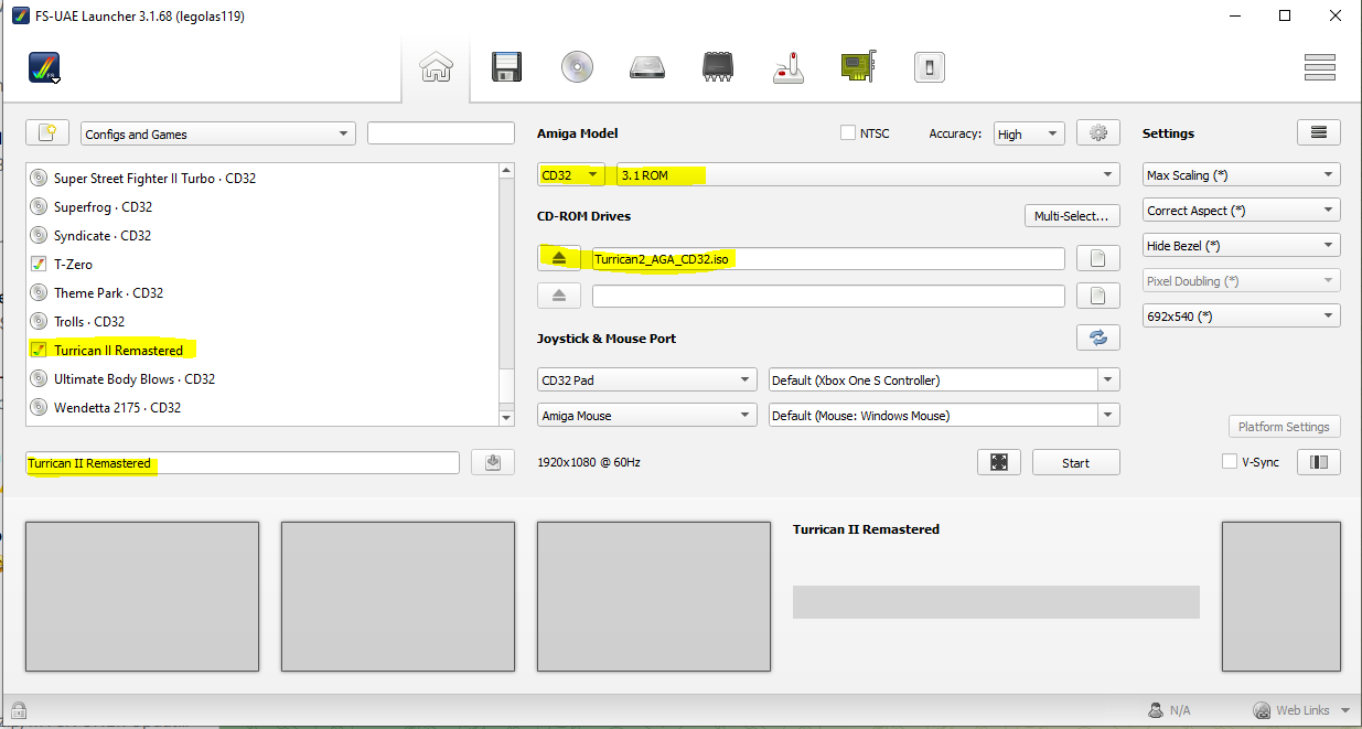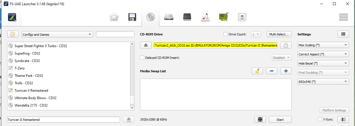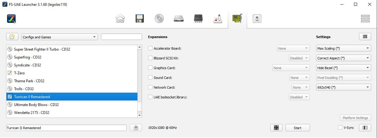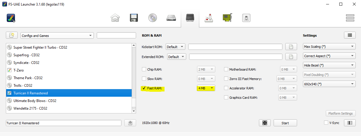 Hi, i would like to run the Amiga CD32 version on FS-UAE. I have created a specific configuration, with 4MB fast ram, but as soon as i run the game, it immediately crashes. Here below my config: