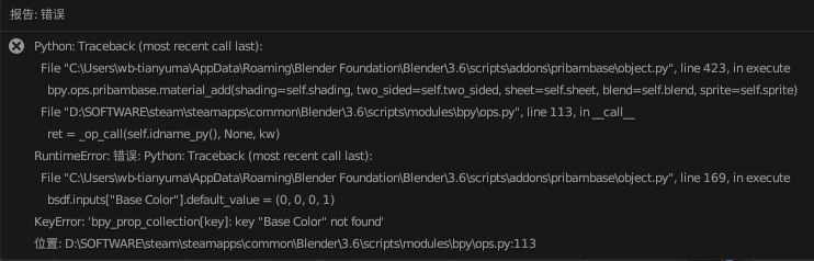 I have my pribambase installed in blender and aseprite and they seems to link as well. But I got this error message when trying to add sprite in blender and it just create a mesh plane.
