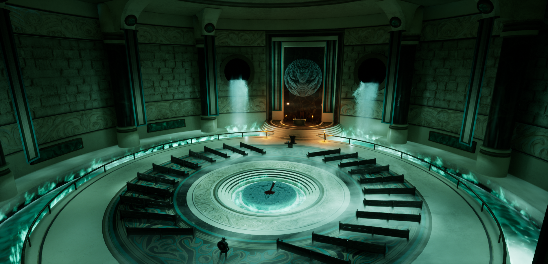 Below is my most recent work that I will post on my portfolio soon. Note, I did not create the vfx for the waterfall and fires, and I purchased the figure at the bottom center. I did however create the theme off a rough concept of mine.
