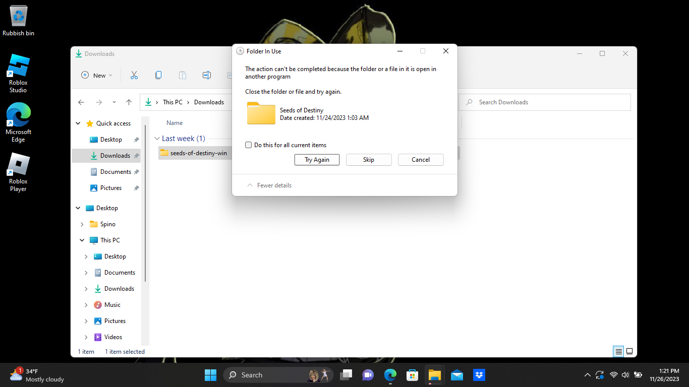 I require assistance: I am unable to delete the folder for the game to get rid of it (Just felt like freeing up space) as it says it is being used in another program.