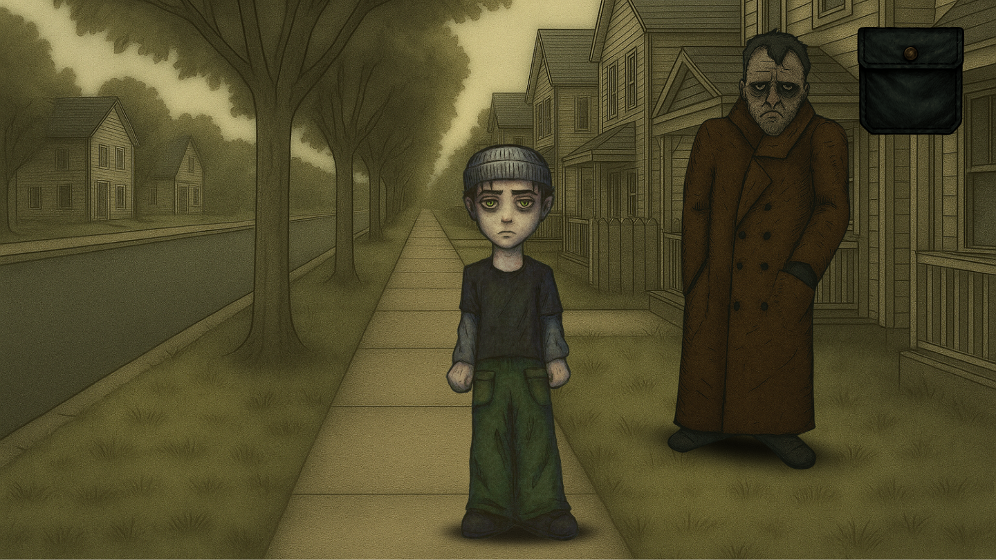 A first-person 2D adventure with a dark and disturbing atmosphere, set in an abandoned rural environment trapped in eternal night. The protagonist is a troubled former teacher who returns to his childhood home in search of peace, only to discover a sinister legend involving demons, dark rituals, and a curse that has stopped time. Exploring the village, solving puzzles and gathering scattered fragments of an old diary, you must try to break the curse that has fallen upon the village. At the same time, you will have to deal with your own demons, such as madness, fear and depression...