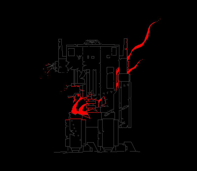 I'm not a pixel-art expert (in fact I am a beginner) but maybe use a brighter colour instead of the grey outline? I think the dullness makes eye think of the structure as unimportant or background, in contrast to the bright red.