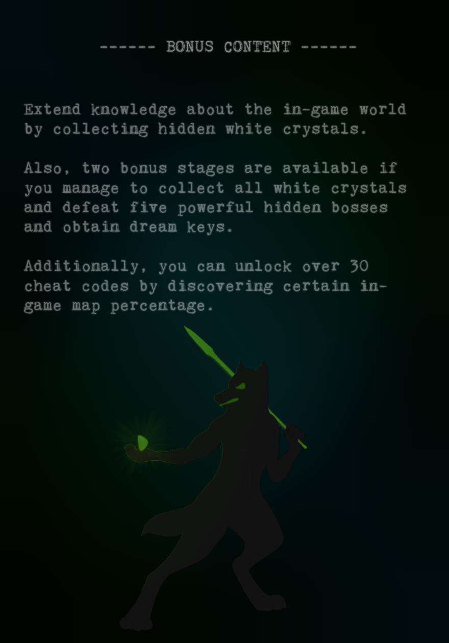 Radnja: U pitanju je eksperiment nad zivotinjama pomocu kristalizovane zivotne energije koja moze izazvati nasilnu evoluciju u svim zivim bicima. A sama nasilna evolucija moze u zivotinjama izazvati trajnu fizicku bol, kao i mentalnu nestabilnost. Igrac je u ulozi Semidori vuka (ili sove) koje konstantno posecuje misticno bice koje sebe pretstavlja kao Dreamwalker.