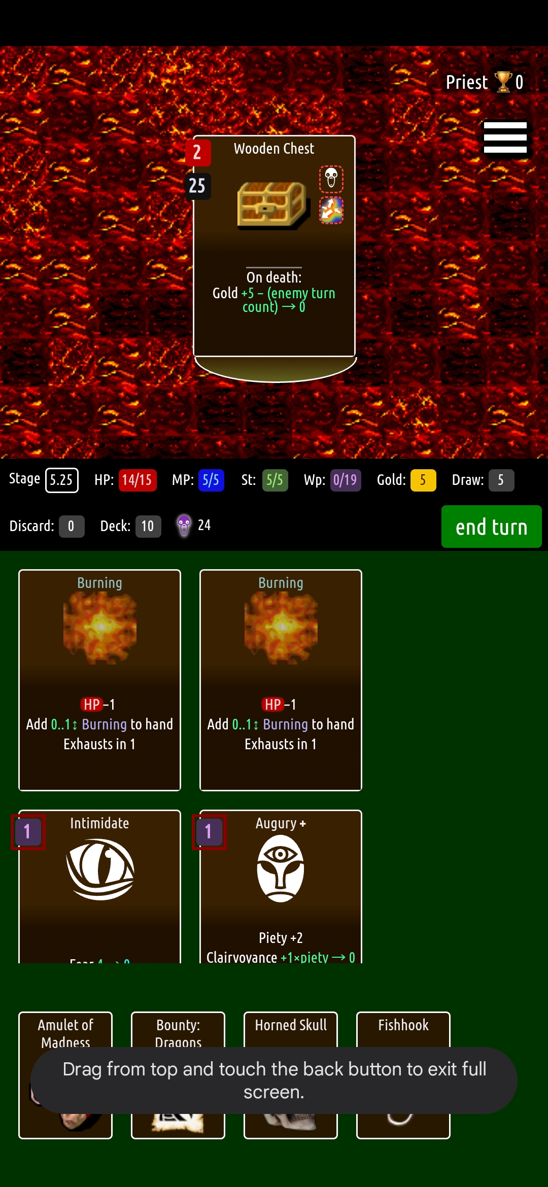 I took this image when I got softlocked, and I forgot I could play burning cards (not that it would help), and I had no willpower to play any cards that could damage the chest.