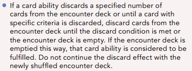 Playing against Klaw using the Master of Time encounter deck, the side scheme Light Of Centuries Sphere is defeated with a few cards on the encounter deck, the encounter deck emptied so it reshuffles but continues to discard until a minion is discarded (the first card on the deck). The effect should wiff since no minion was discarded before the deck would empty.
