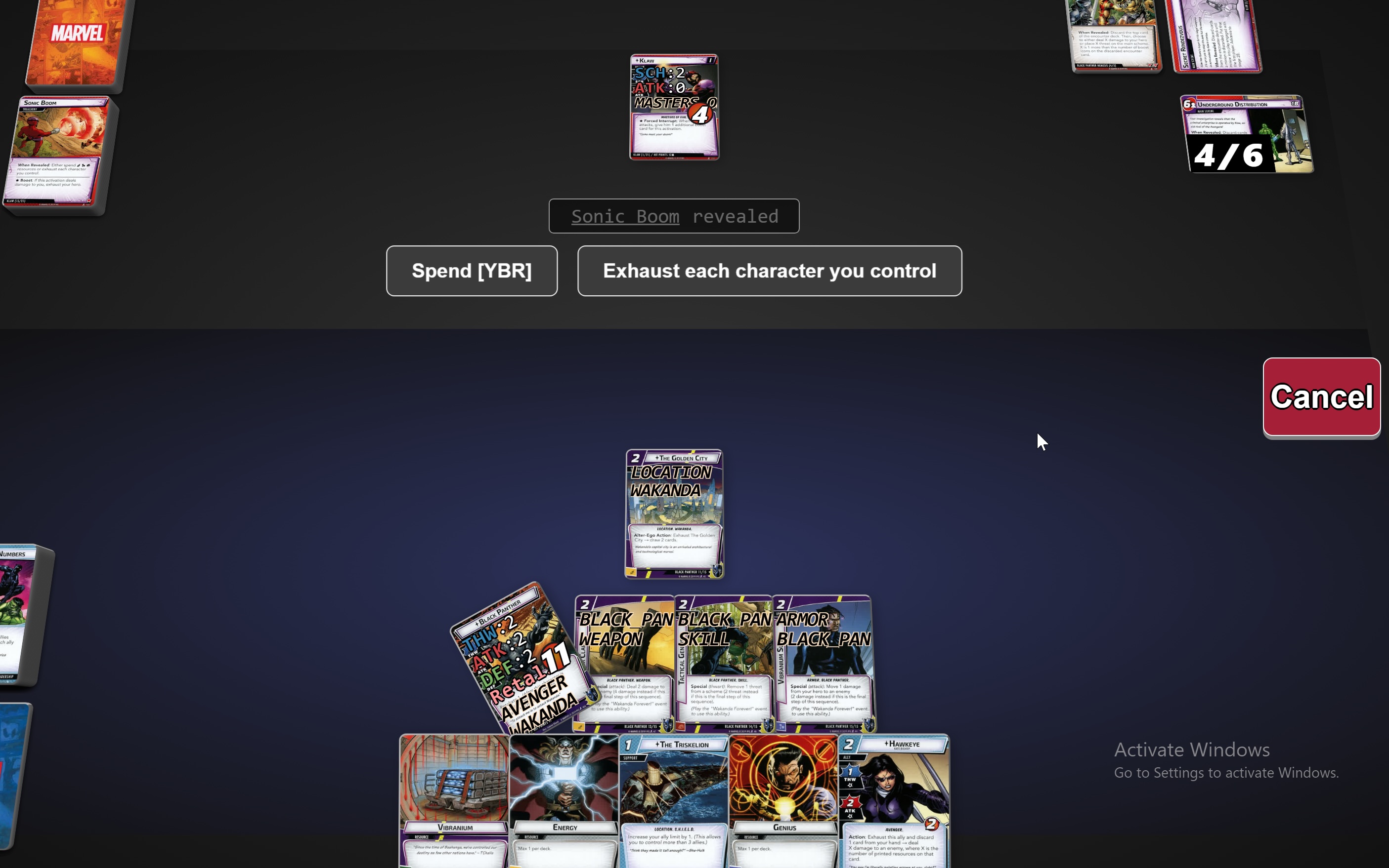 While playing against Kang (sorry, I am afraid I do not have a save file), Sonic Boom (https://marvelcdb.com/card/01123) was revealed as a encounter card. I had no allies in play and my hero was exhausted: