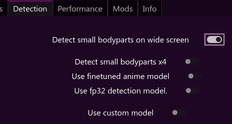 The option "Detect small bodyparts on wide screen" seems to crash the app.