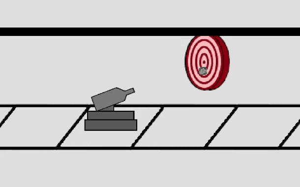 it's a shooting gallery game and you have to fight off targets.