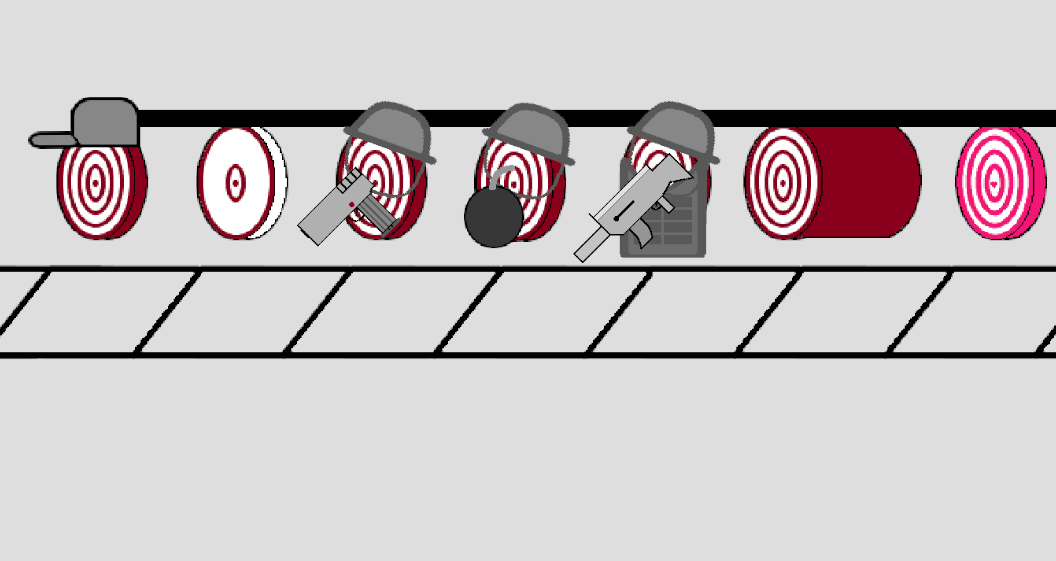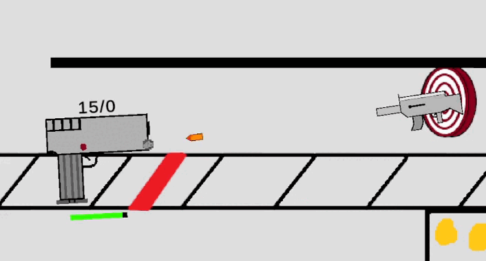 Hi! Today I want to tell you about my new game called Rifle Range. The point of the game is not to let the targets reach the red line. You will have an arsenal of weapons, different types, and helpers. The game will have 50 levels, on each 10 will be a boss. When passing a level the player will be given a new helper, weapon or open a new path for the targets. In total there will be 4 paths on which the targets can move. And they will be opened as you pass the levels.