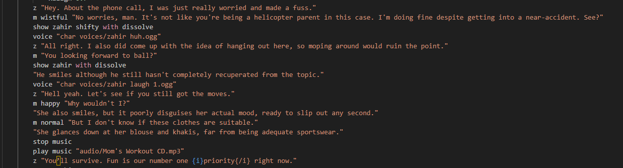 That being said, the only stat-raising there will be is affection. Most of the number-crunching will be behind the scenes. I appreciate input from anyone whose interested.
