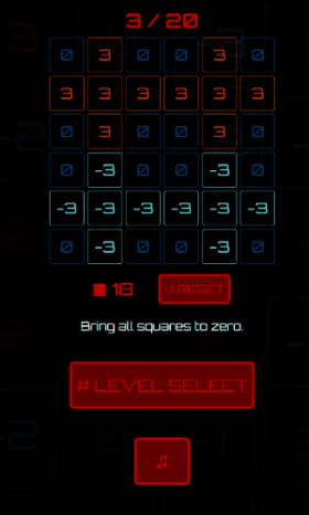 Click on a square to reduce or increase its value, but be careful: it also affects its neighbors.