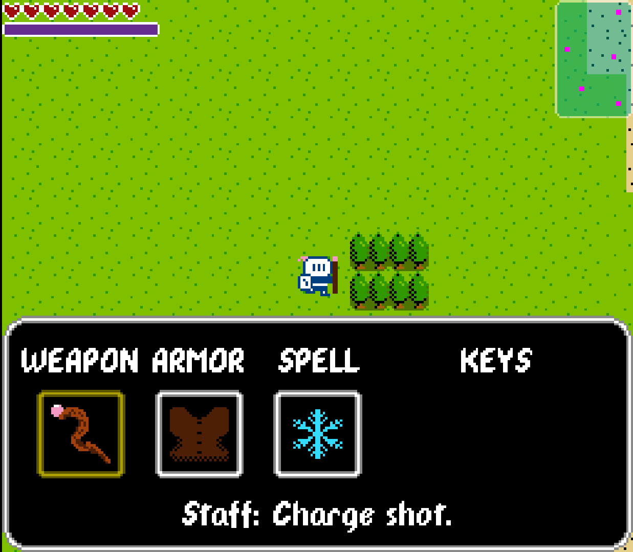 The Last Knight is an open adventure game where the action never stops! Explore a semi-random map where new monsters are always roaming. Find treasures, villages, and dungeons on your quest! But be warned! The overworld is always active and monsters are always on the attack! Don't forget to defend the townfolk while you are questing for treasure!