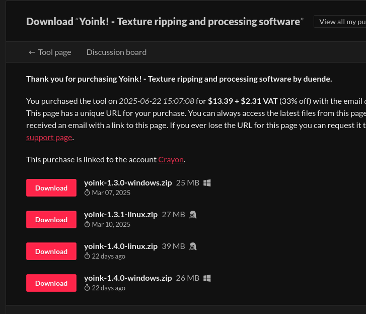 I purchased the full software but its not letting me export the images, it thinks I haven't purchased it or something. I downloaded the full version yoink-1.4.0-linux version.