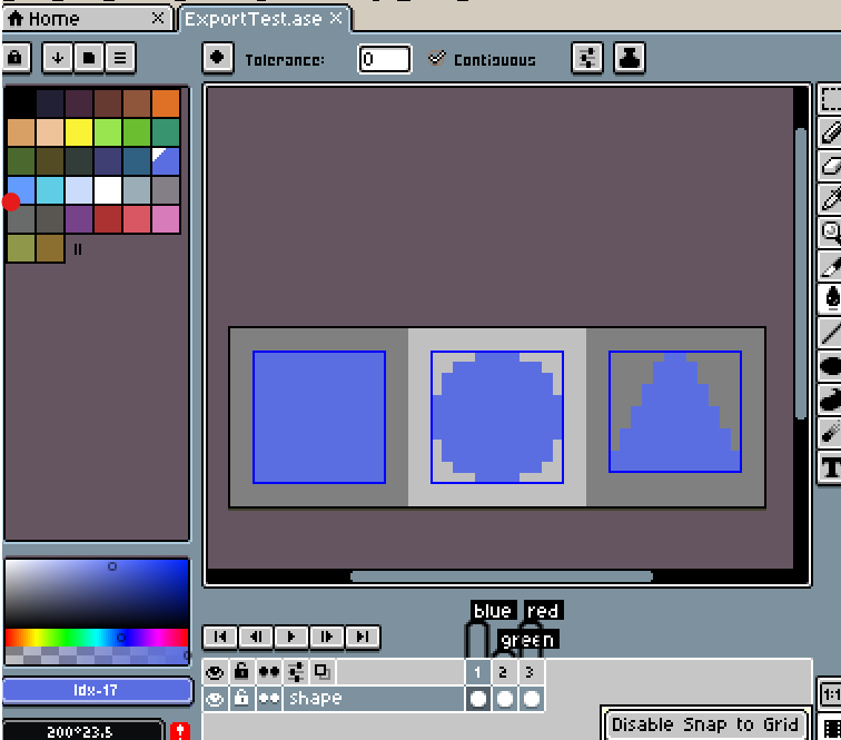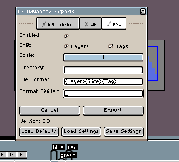 Additionally, if possible, I would like to request being able to add a regular string to the naming of the output. As seen below, I used the layer to add the word shape to all the exported sprites, however; it would be much more convenient to add a string instead so I can use shape{Slice}{Tag} instead. I could use {shape}{Slice}{Tag}, however; currently it will output with the curly brackets as well.