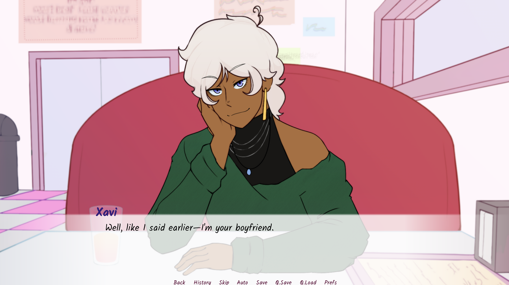 Lonesome Company is a short kinetic visual novel where you wake up in a strange diner, sitting across an even stranger young man--who is also apparently is your boyfriend! But you're not quite sure if you believe him, especially since you aren't sure who he even is... But he's nice, charming, and enjoys your company just as well. Would it really be worth it to push the issue...?