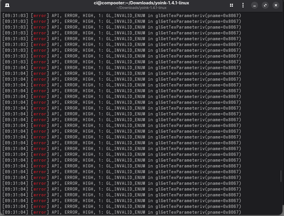 Im not sure if its a linux thing or my machine thing tbh. I tried running the windows version through wine and get the same issue. The error seems to generate whenever you click the right window.
