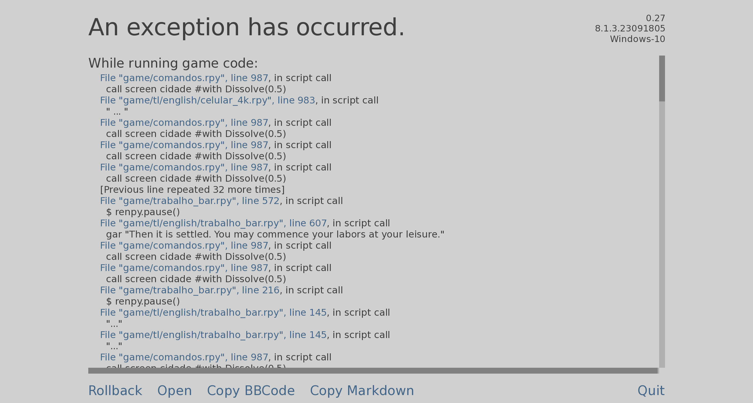 Hi, I love the game and all of these possibilities but I have a problem just after talking to my Boss about lead given by Caio. The game crashed. Maybe it's already fixed in the next episode but I want to know if it is. Thanks, I joined the screen.