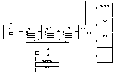 I want to present the user with an odd-number of questions, let’s say a total of 5 for theoretical purposes. Preferably, I would like the questions to exist on their own separate cards rather than mashed into one. Each potential result of the quiz would have a corresponding answer in each question, but obviously I would need to track which one was chosen the MOST out of the questions. After they answer the questions, the logic should spit out the video result corresponding to that weighted variable.