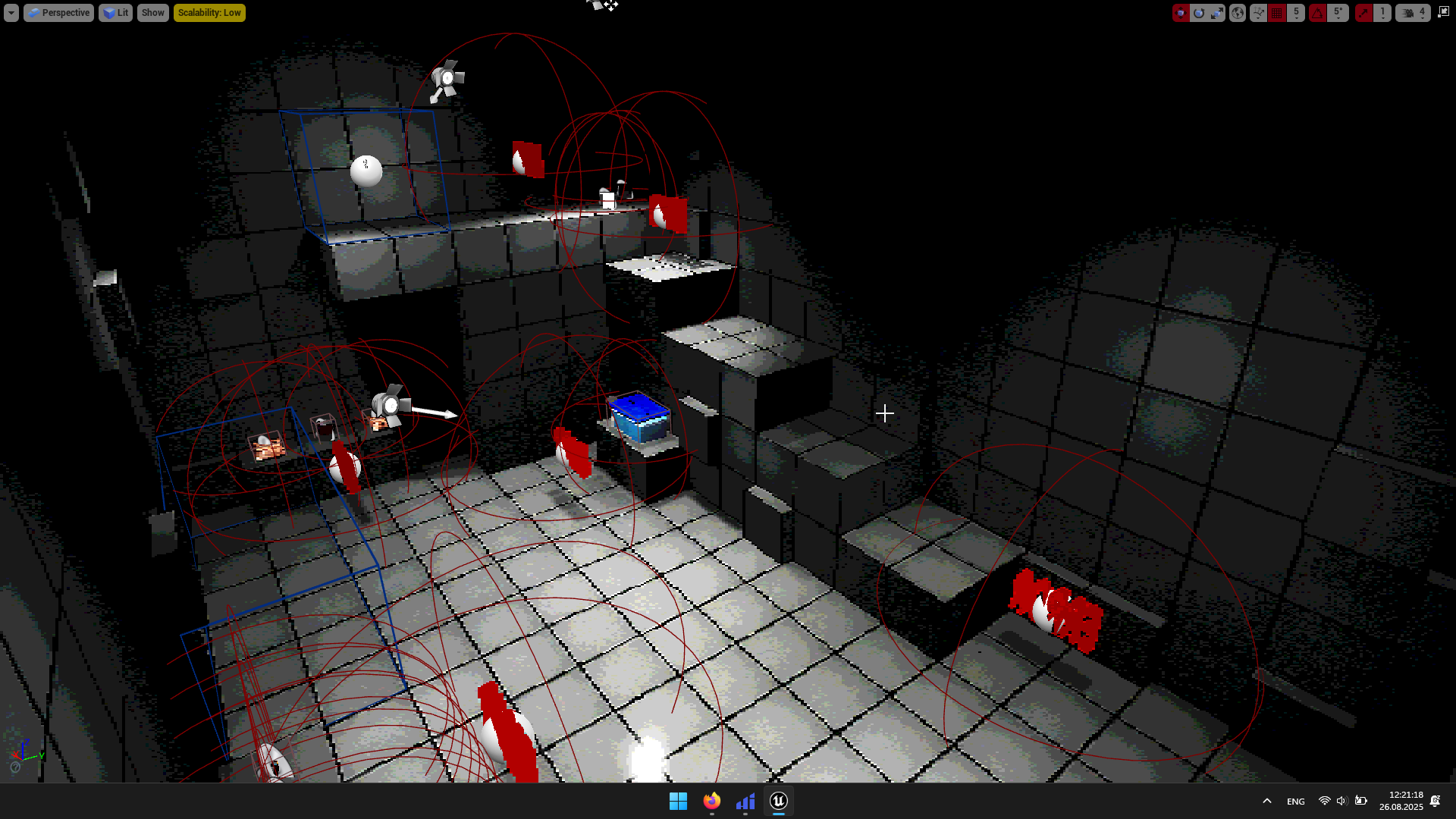 Мне удалось выбраться наверх с помощью бага коллизий упавшей лампы на уровне test 9. Так что я рекомендую добавить ignore/overlap collision класса персонажа для этой лампы(как вы уже сделали для куба, открывающего двери).