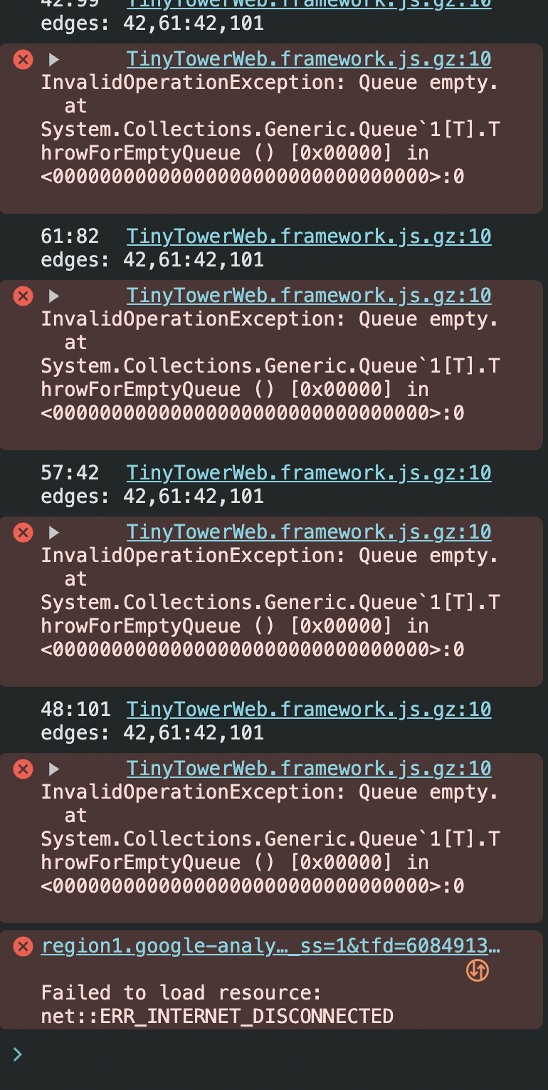 So, the first bug seems to occur because of the borders of the world. It's a 2D array of cells, and its dimensions are 100x100 and do not scale if they were crossed. That's why it's causing "memory access out of bounds" exception. And I suppose it was the ship crossing the borders, because you've already built some grounds on the same X and Y coordinates as the ground on the picture has.