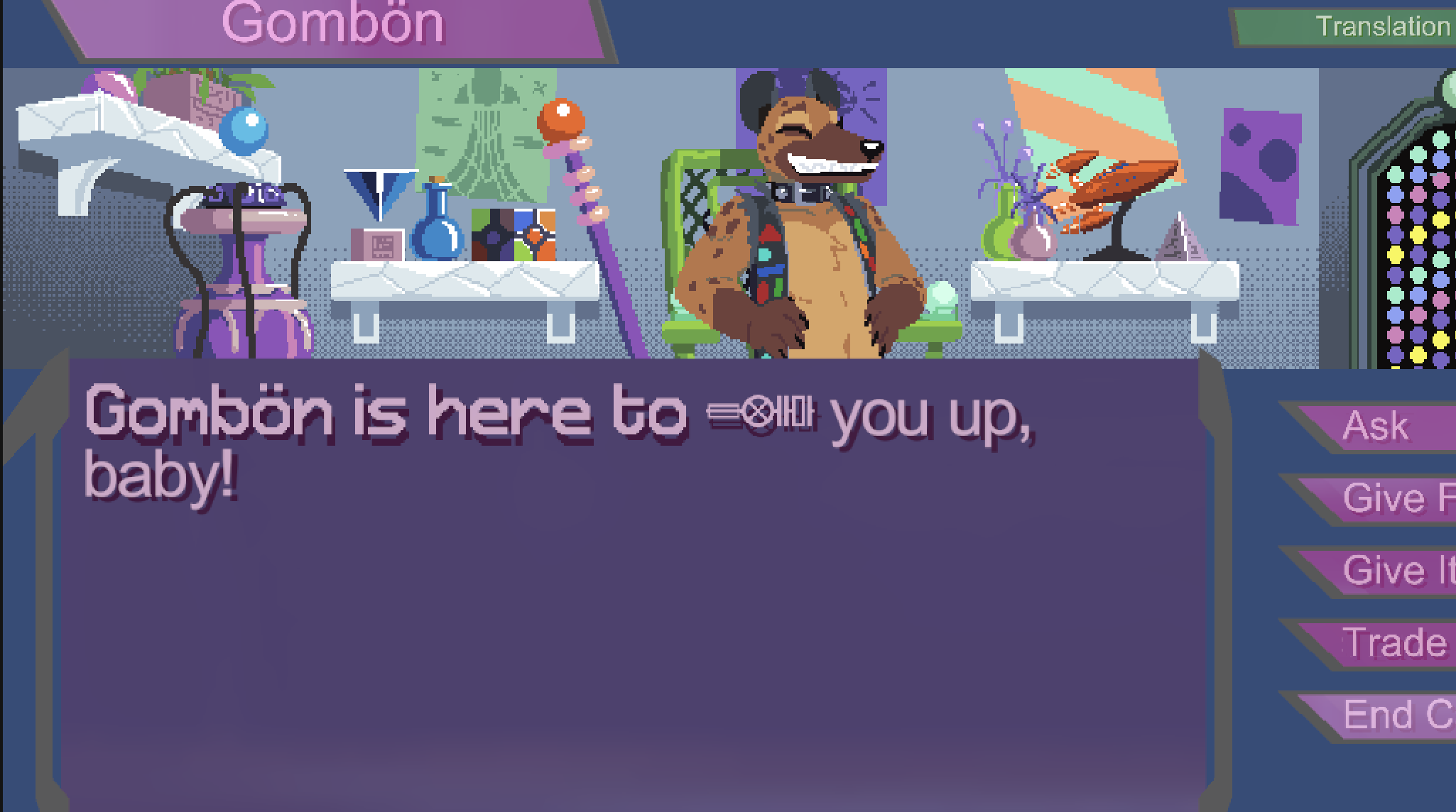 <f=Retron2000Regular>Gombön is here to <e=bleepOpen><f=Helpers>fuck</f><e=bleepClose><e=excl=open> you up, baby!<e=excl=close></f>