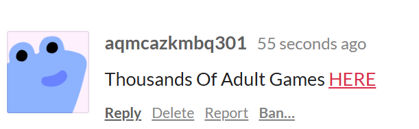 Since the credit card incident, a spam bot has been showing up, especially in adult games, constantly posting the phrase “Thousands of Adult Games Here”
