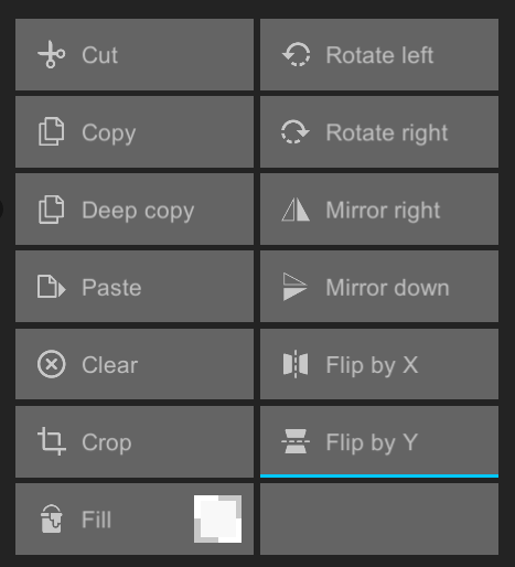 The current version can only perform common rotation and movement after selecting the tool, but we need more complex functions, such as mirroring along the X axis, mirroring along the Y axis, inversion, etc.