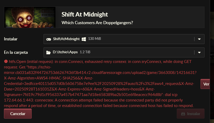 Hi,been almost a week now that I cant use the itchio app for anything,I cant donwload/update anything I have and if I download something I got these error,I already tried with five diferent games and I have the same error everytime