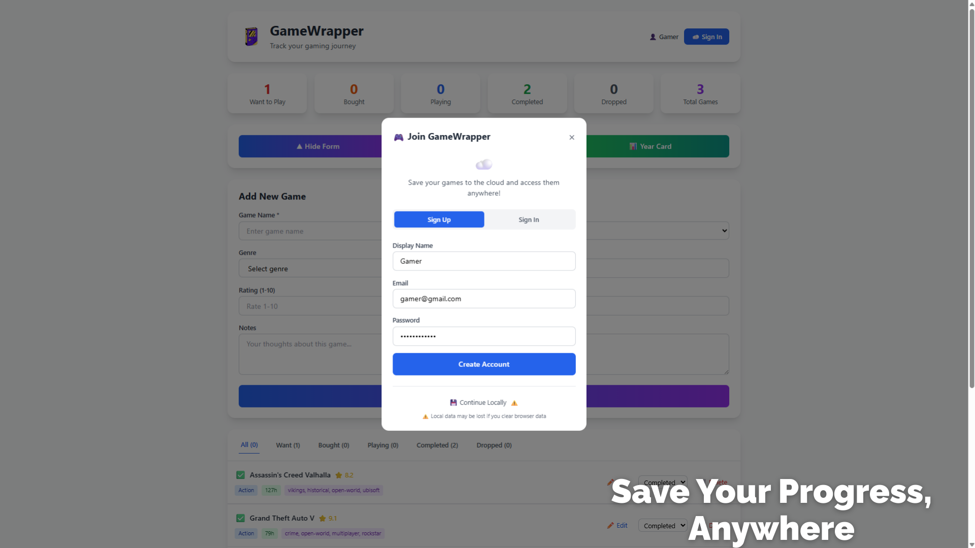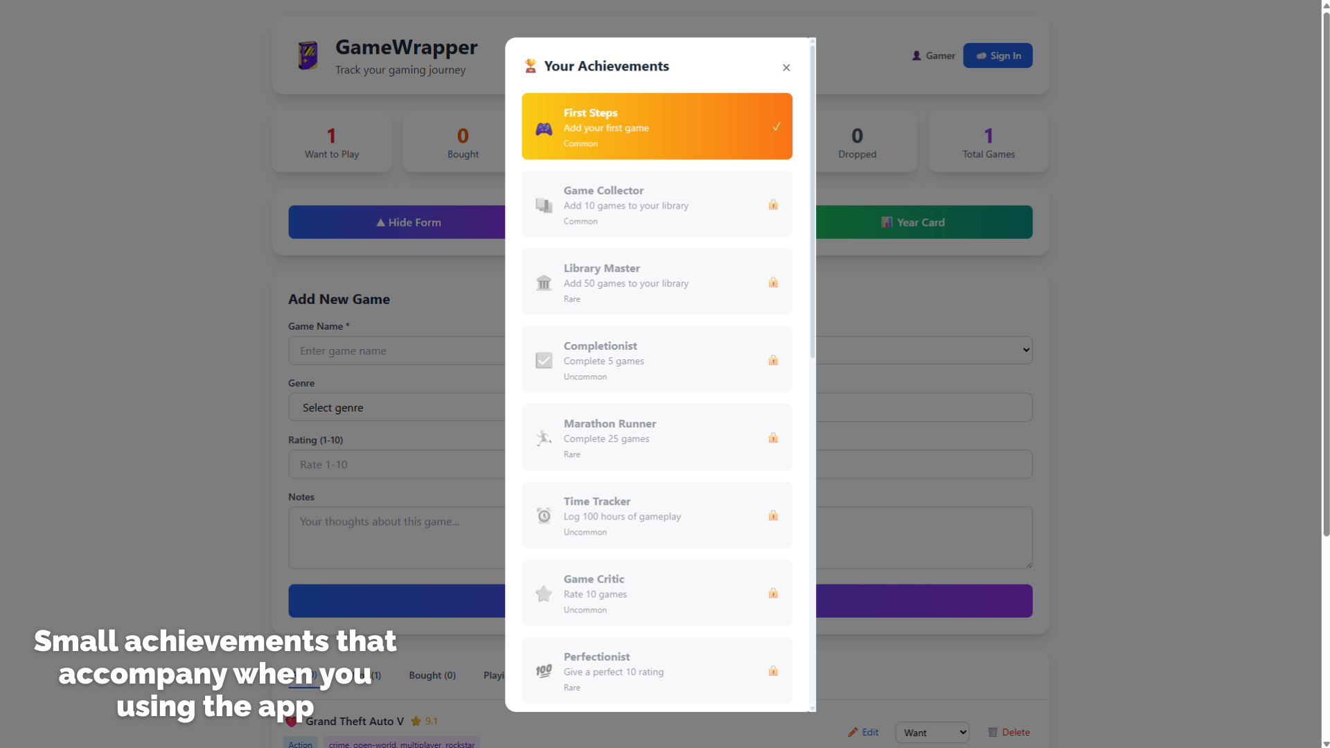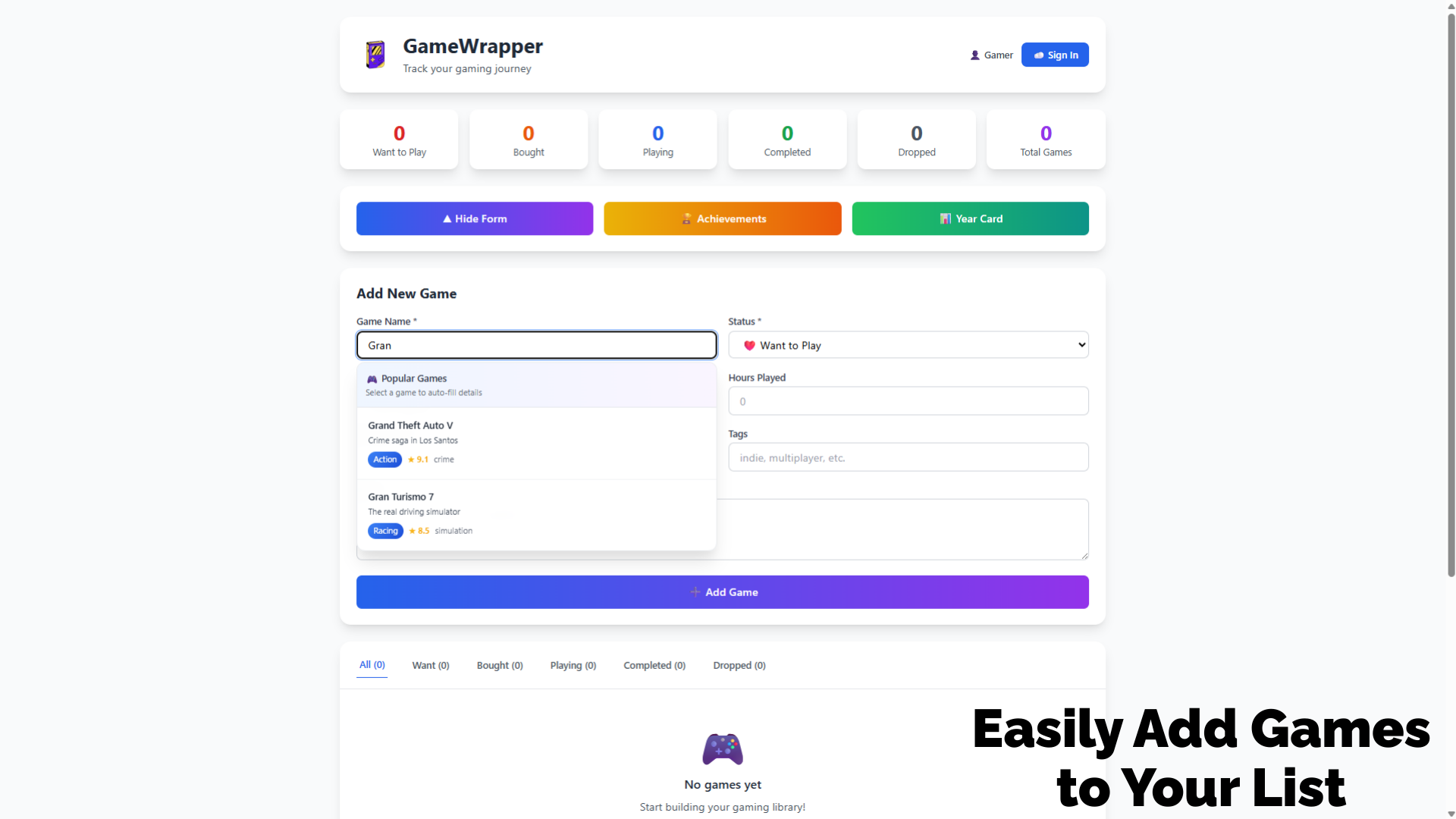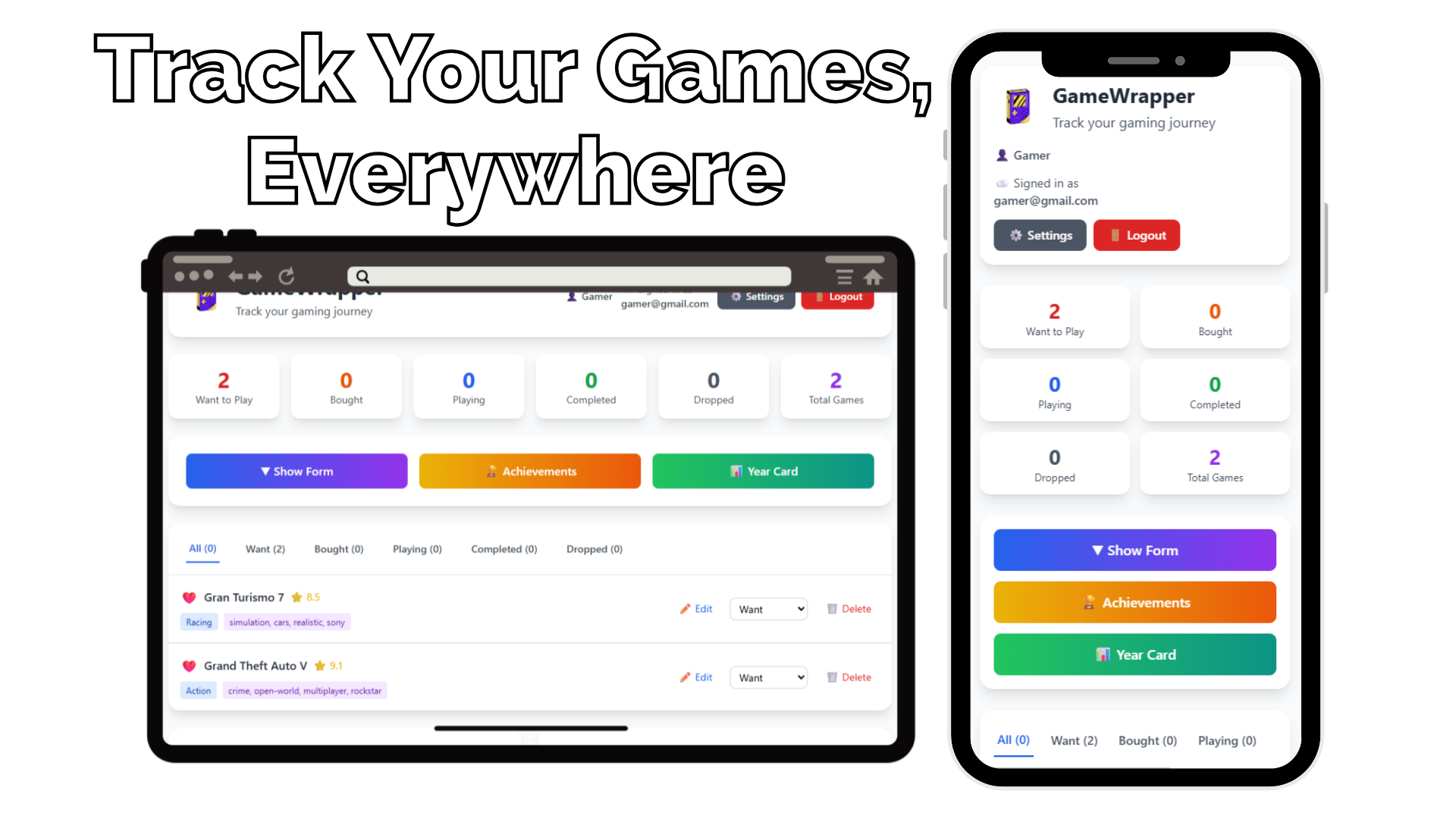 Whether you’re a casual player or a dedicated gamer, GameWrapper is the perfect tool to organize your passion.