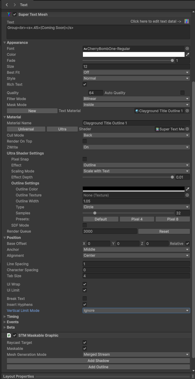 When I try to use the STM Ultra shader, the text gets all these weird artifacts and eventually disappears. That's been happening to me since I started the project in Unity 2023.2, but I've been putting off the UI in my game until now.