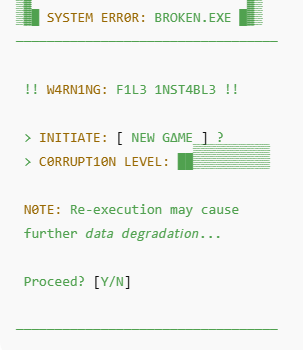 An experimental meta art-game where every press of New Game pulls you deeper into static, fragments, and distortion. The file resists, unravels and drags you further into the glitch.