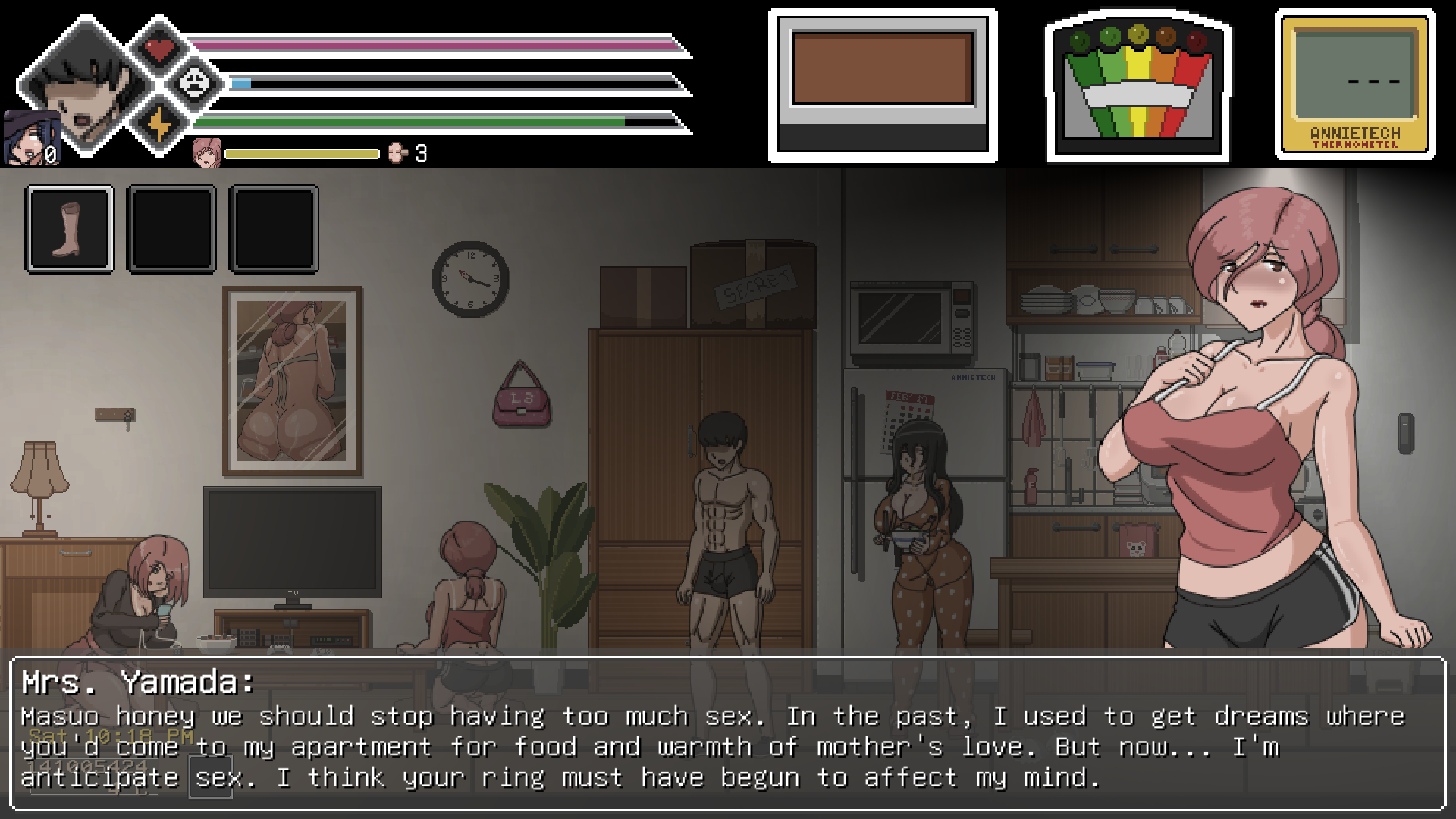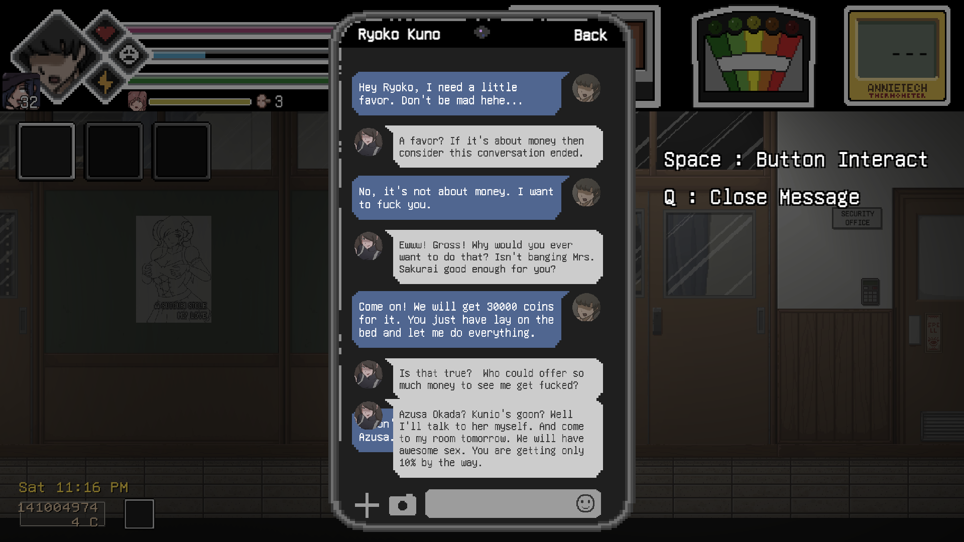 - Momoko appearing to Masuo's mother causing dialogue glitch.