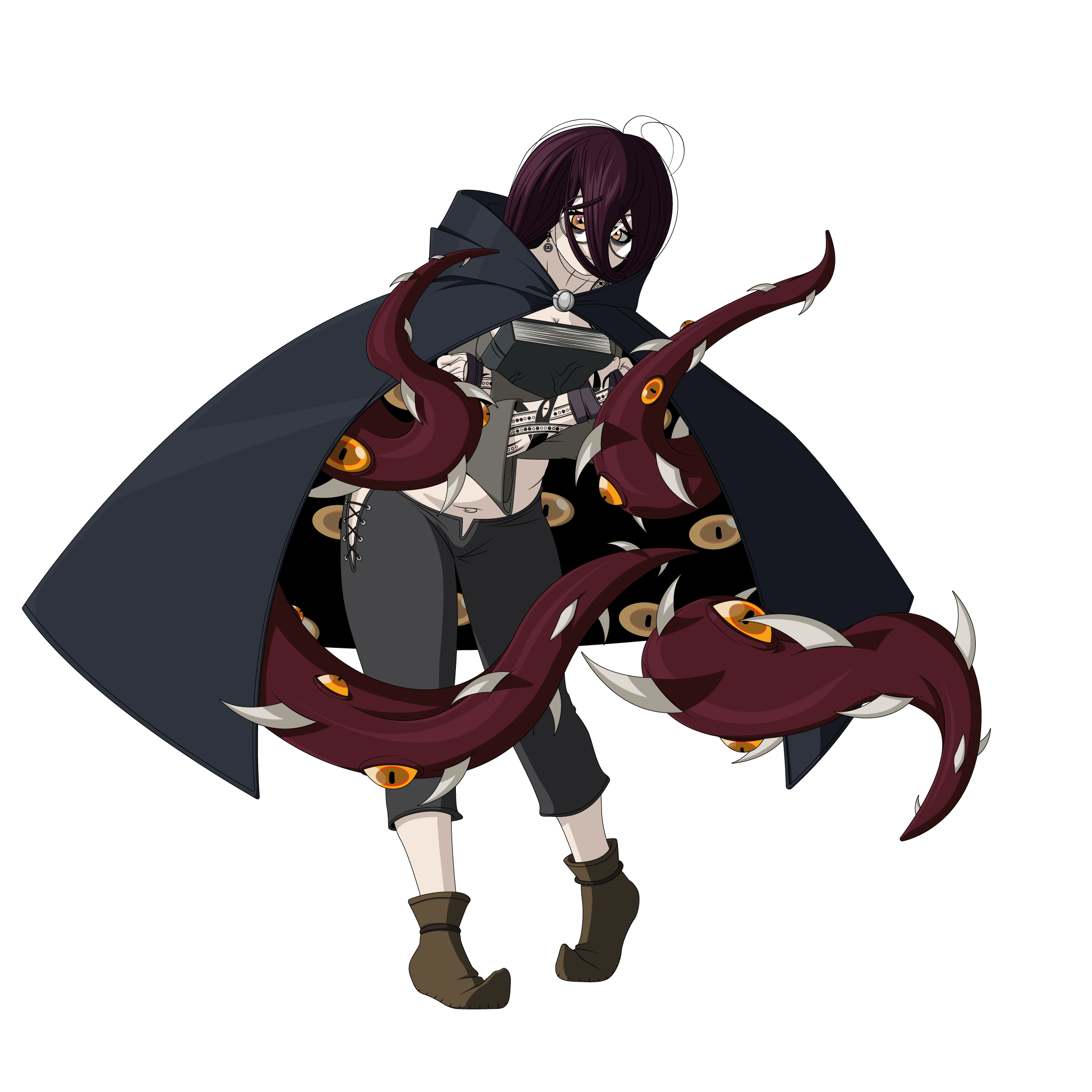 Drawn and designed by me again, she features tentacles, A LOT of tentacles, but also two personalities (In the lobby, it'd be a pain to implement it during combat too), just feed her enough for her corruption (Weight) to be at max. I hope you enjoy her.