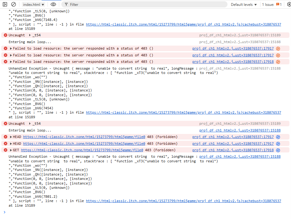 The game works in IDE, github pages and gamejolt so to even attempt to fix i have to compile/upload it back everytime, does itch have special requirements for web browser games?