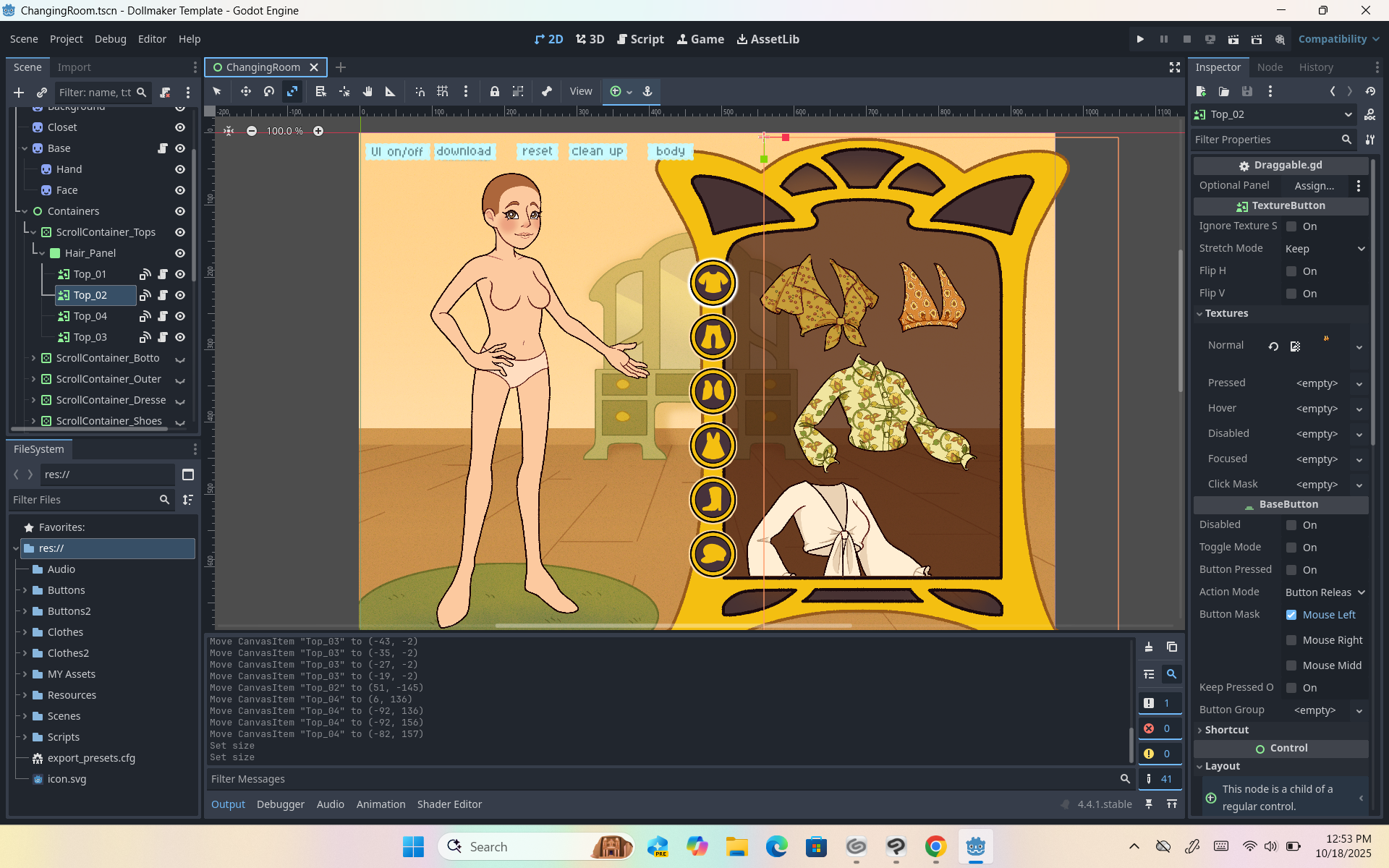 Hello! I would first like to thank mala and basicbean for making this template. Second, while I am aware that the main mechanic of this template is dragging and dropping the clothes onto the doll, I was wondering how I can change the mechanics/functions so that clicking on the clothing item makes it appear on the doll instead? (If you're familiar with Lacey's Wardrobe that's how the mechanic works in that game.)