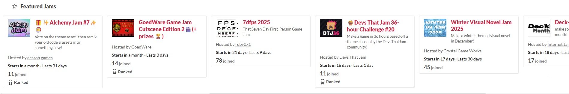 I’d like to bring up a topic that hasn’t been discussed on the forum since 2023 — the criteria for getting a jam featured on Itch.io.