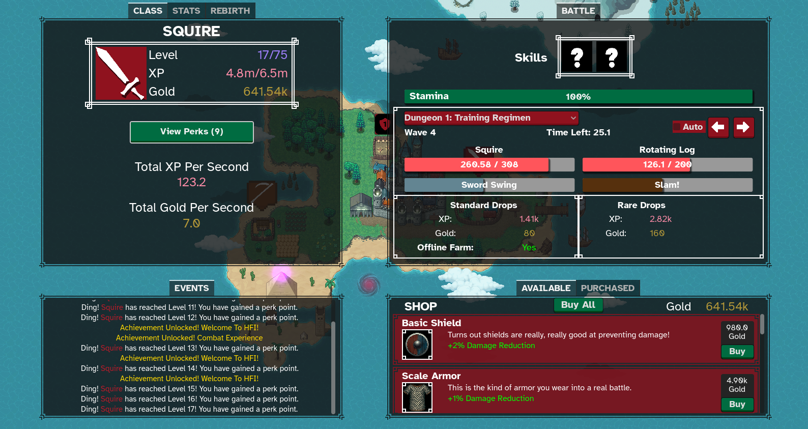 Between releasing my original demo, the huge update that came out a few weeks ago, and countless community feedback items implemented, I can safely say that the demo is complete. Here is what you will find in High Fantasy Idle: