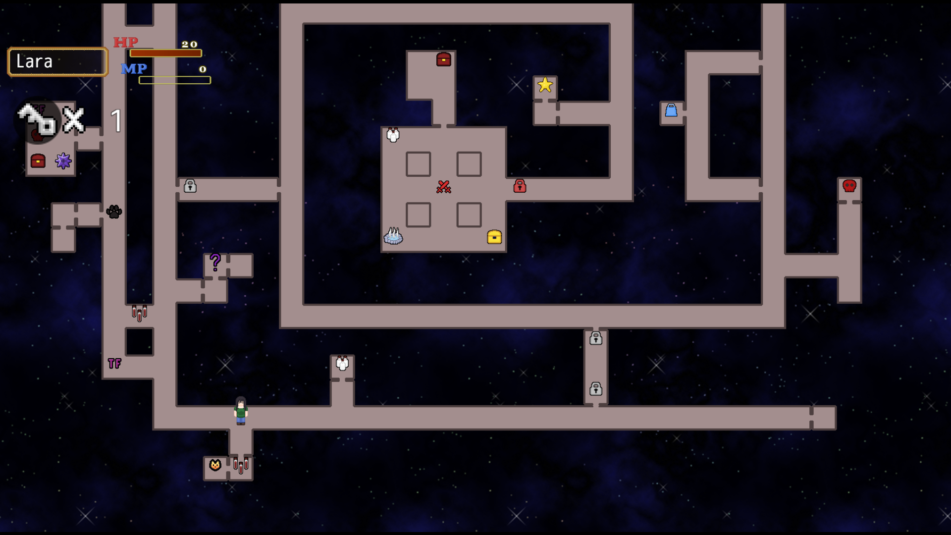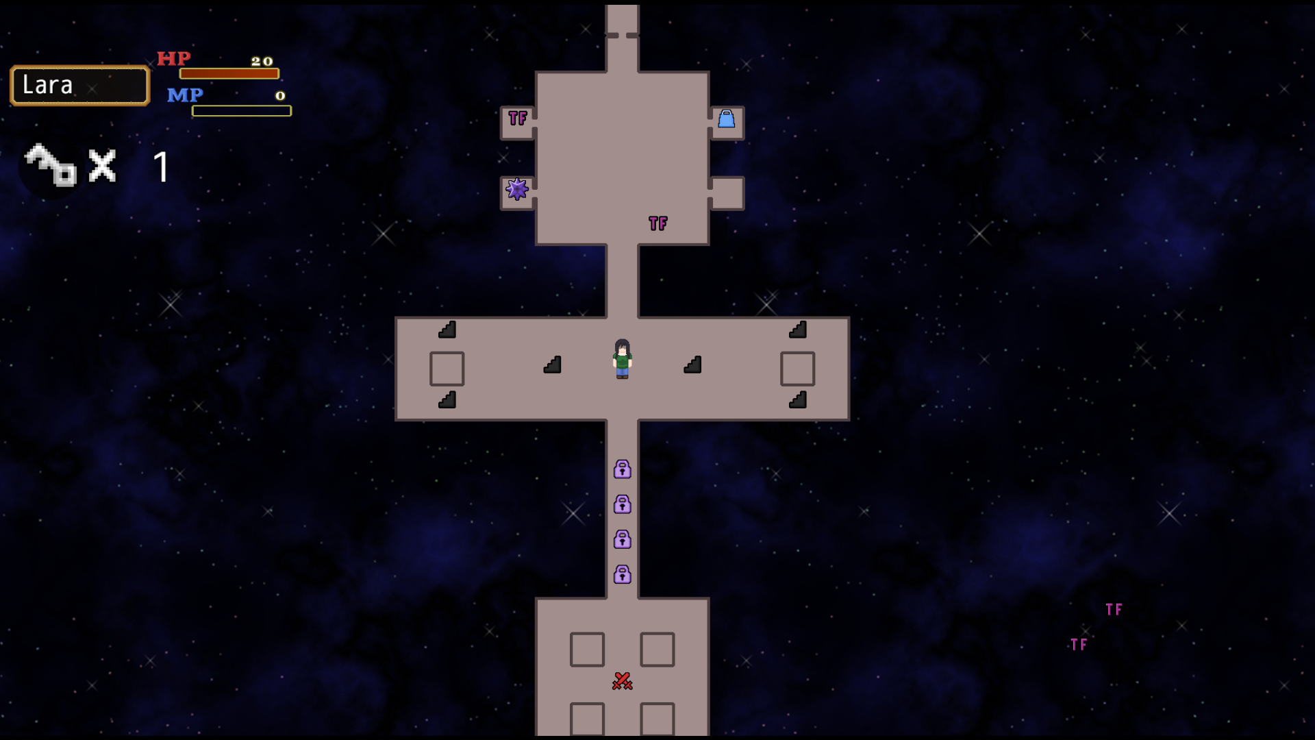 To gather the magic keys you will need to explore the area by using the stairs. Each pair of stairs leads to a randomized floor.